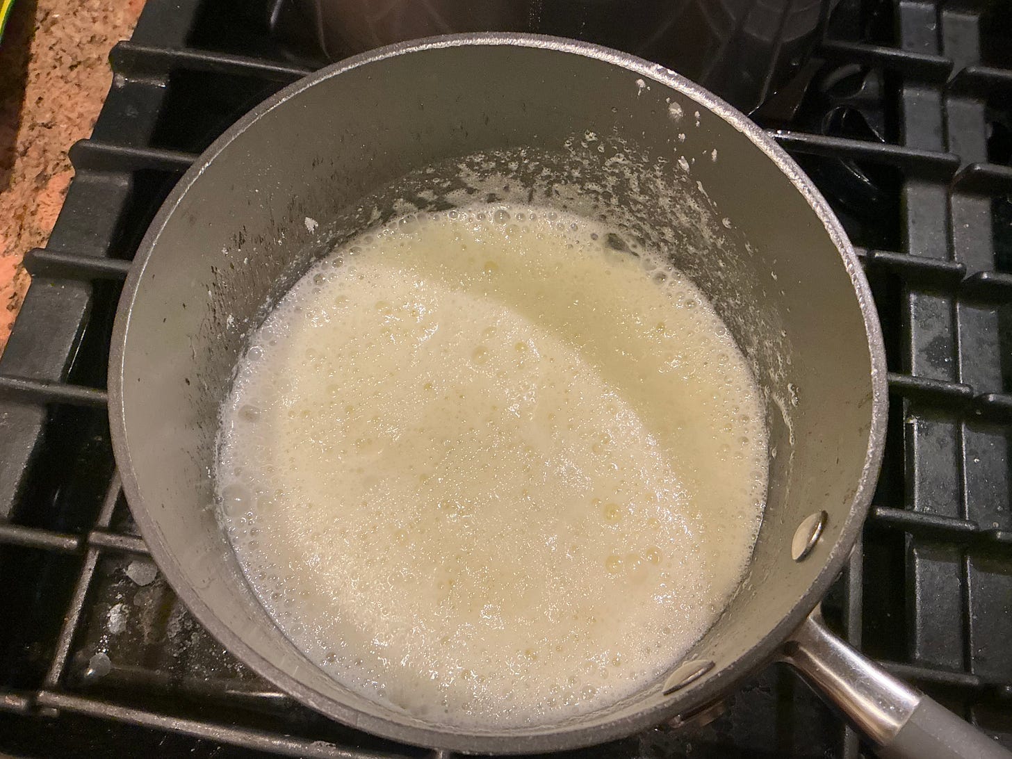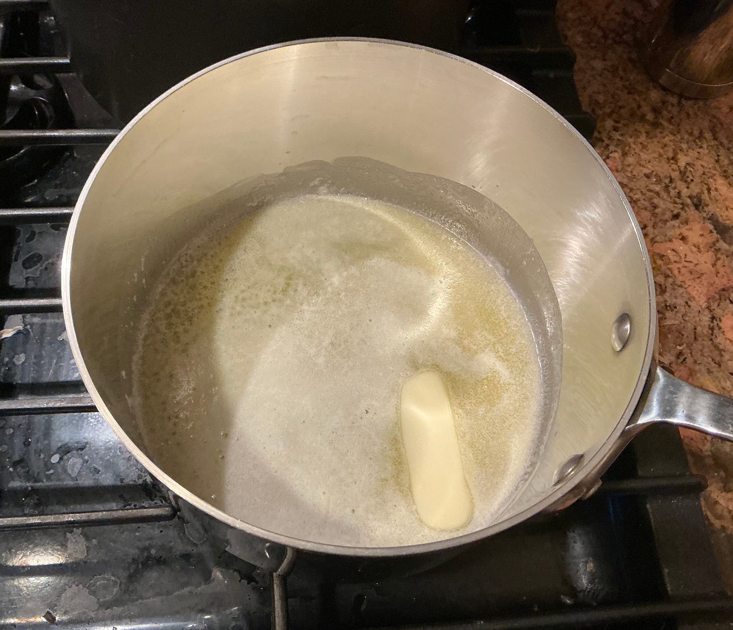 First — in the white sauce shots that come later — it isn’t clear that you must melt the butter first, then stir in an appropriate amount of cornstarch and mix it smooth before adding the milk. You can use flour instead of cornstarch; it works just as well. Neither Mom nor I ever measured anything in this recipe. You simply use your eyes, your hands, and your common sense.