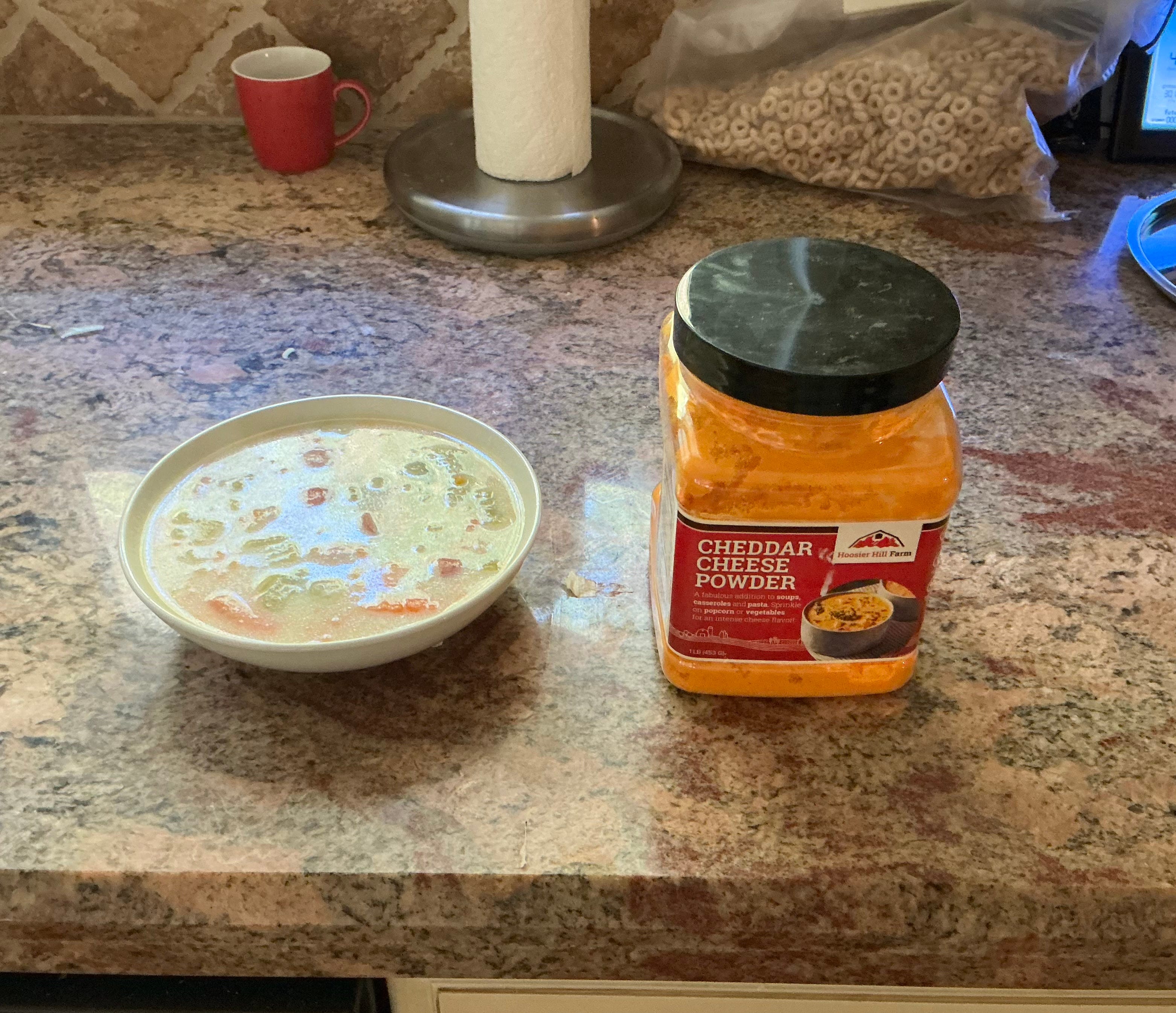 The last photo is critical — it shows the other essential part of Mom’s recipe: powdered cheddar cheese. Kraft hasn’t made it in years, but you can still find it on Amazon (look for Hoosier Hill Farms). This is a make-or-break ingredient. Do it.