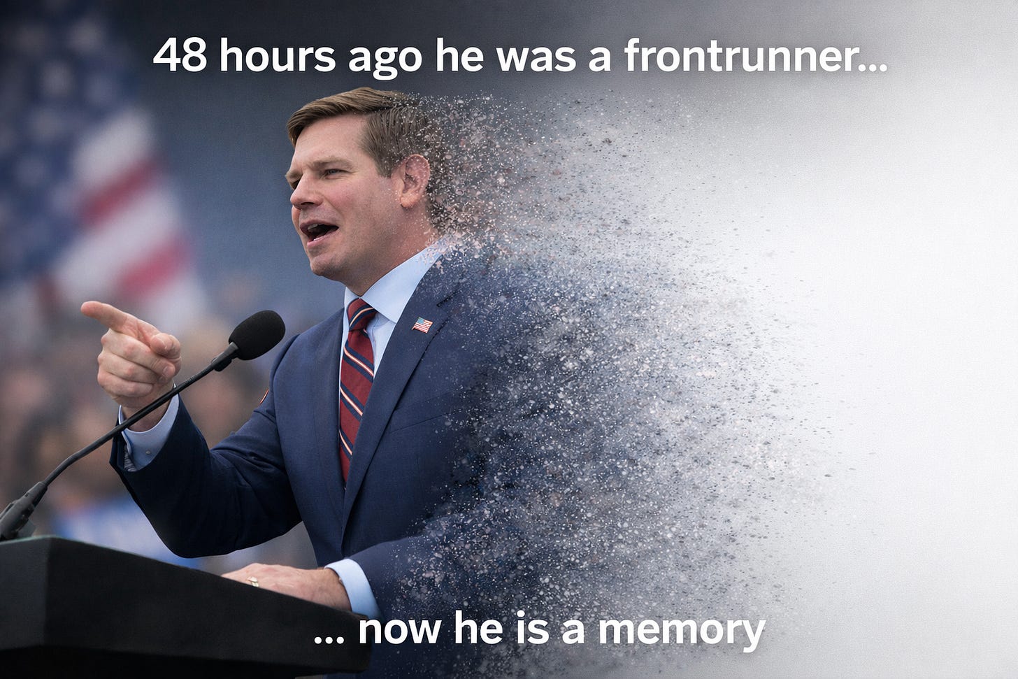A candidate went from frontrunner to finished in roughly 48 hours.